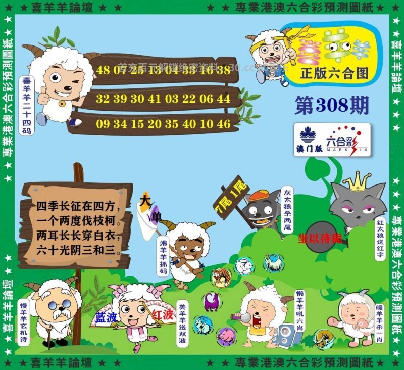 | 308期平特:☃️【兔兔兔】☃️ 308期二连:【兔龙】【鸡猪】 308期三连:【兔龙羊】【鸡猪虎】 |